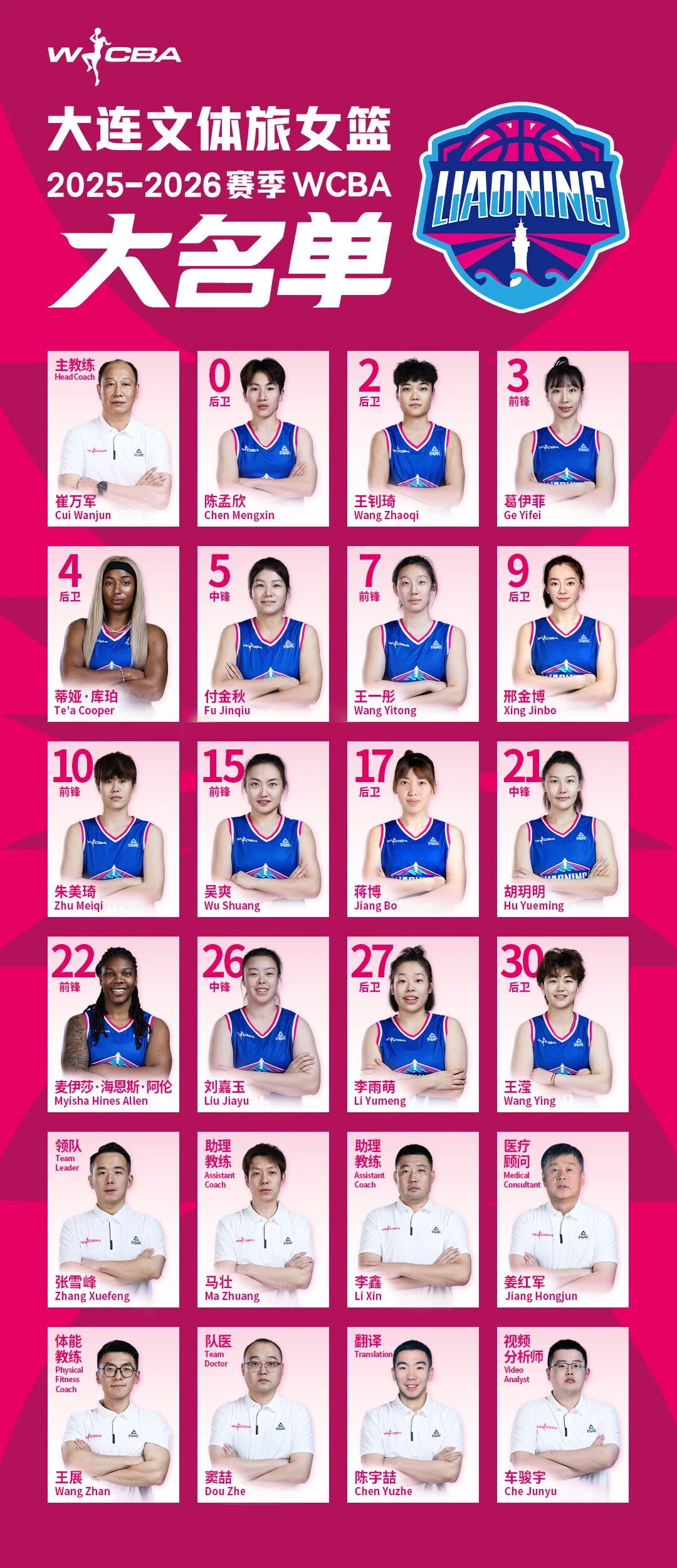 近日,我俱樂部已將新賽季大連文體旅女籃球員完整注冊材料報送至中國籃協(xié)審核,現(xiàn)公示15人球員及教練組名單如下!