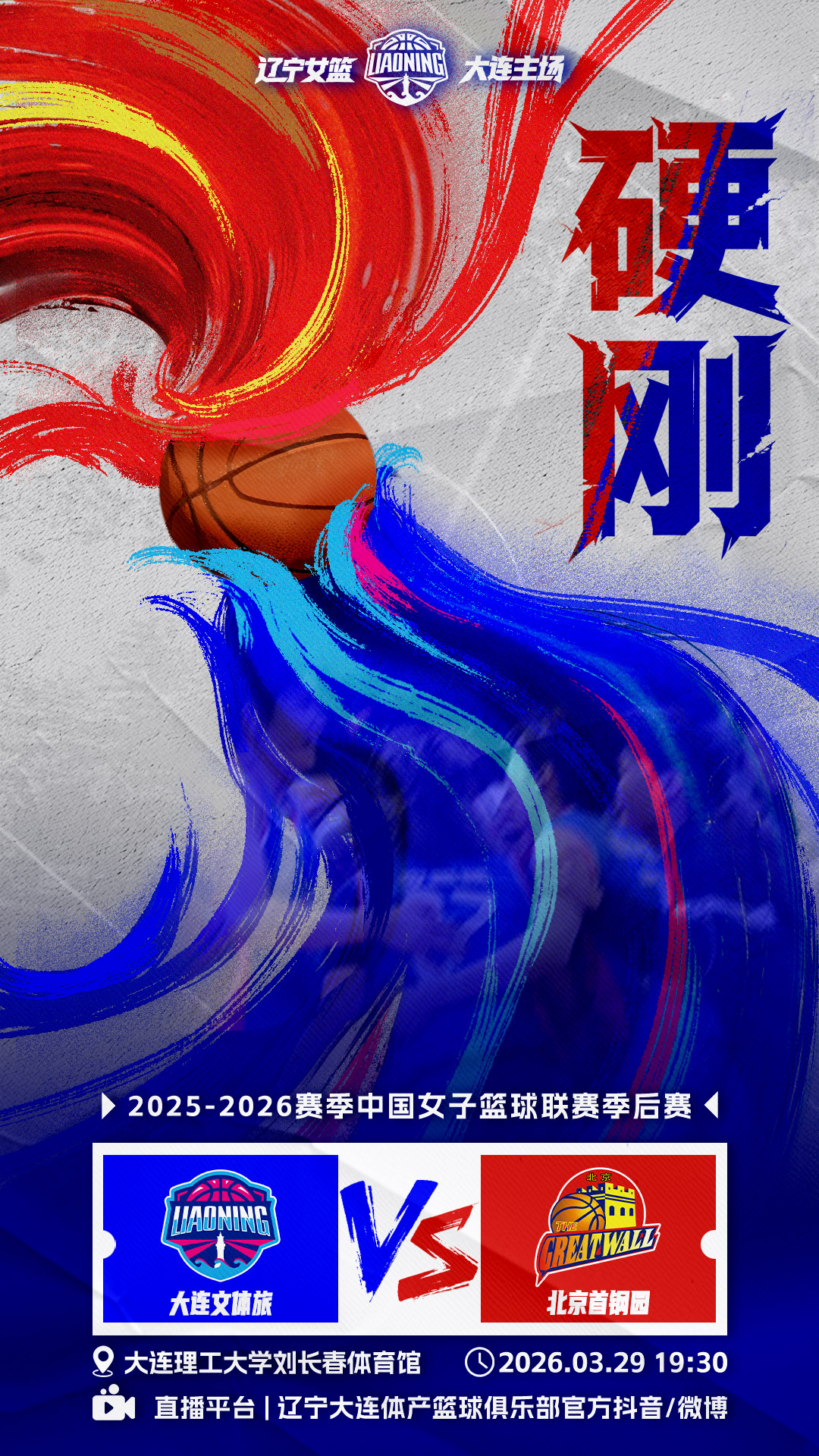 以熱血赴硬仗,以鋒芒破強敵。2025-2026賽季W(wǎng)CBA季后賽戰(zhàn)火重燃,3月29日19:30,大連文體旅女籃坐鎮(zhèn)主場,迎戰(zhàn)北京首鋼園女籃。任對手何等強悍,硬剛到底是我們唯一的信條。一路并肩的汗水,已凝成迎戰(zhàn)強敵的底氣;一路磨礪的足跡,正化作刺破鋒芒的利刃。姑娘們整裝待發(fā),誓要在主場用每一次拼搶、每一次攻防、每一次奔跑,寫下無畏的注腳,刻下硬剛的宣言。