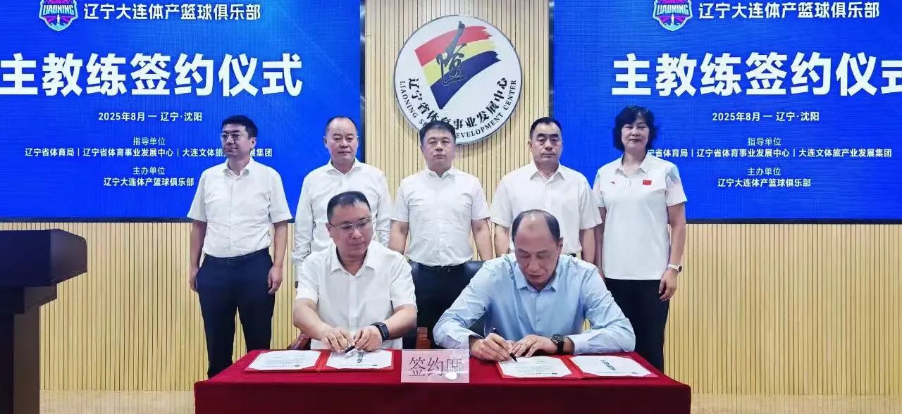 遼寧大連體產(chǎn)籃球俱樂部在遼寧省體育事業(yè)發(fā)展中心隆重舉行主教練簽約儀式。遼寧省體育局黨組書記、局長曹陽,遼寧省體育事業(yè)發(fā)展中心黨委書記王海峰,遼寧省體育事業(yè)發(fā)展中心主任王萍,遼寧省體育事業(yè)發(fā)展中心副主任丁美媛、王輝、李曄昱,大連文體旅產(chǎn)業(yè)發(fā)展集團(tuán)黨委書記、董事長李雪松,大連文體旅產(chǎn)業(yè)發(fā)展集團(tuán)副總經(jīng)理周凱,遼寧大連體產(chǎn)籃球俱樂部總經(jīng)理夏光濱等嘉賓共同出席并見證簽約。