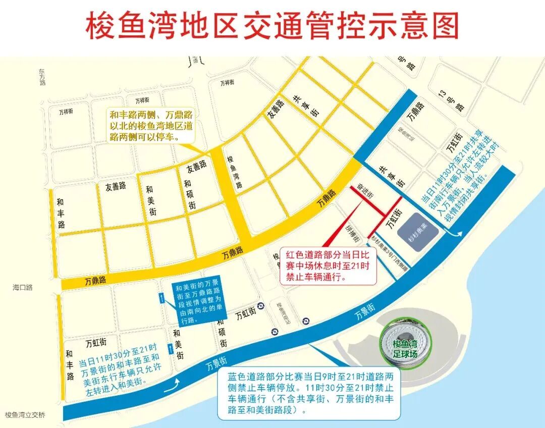 四、沿途單位和市民請?zhí)崆昂侠戆才懦鲂?。大連梭魚灣足球場賽事期間可由東快路、萬鼎路、和豐路、萬景街(和豐路以西路段)、大連灣海底隧道進(jìn)出梭魚灣地區(qū)。