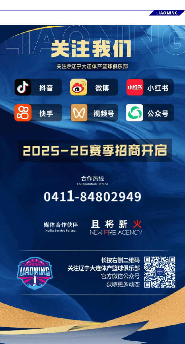 敬請(qǐng)廣大球迷朋友鎖定遼寧大連體產(chǎn)籃球俱樂部官方抖音及微博賬號(hào),獲取最新賽況與直播信息。讓我們跨越山海,云端相聚,共同為遼寧女籃吶喊助威!