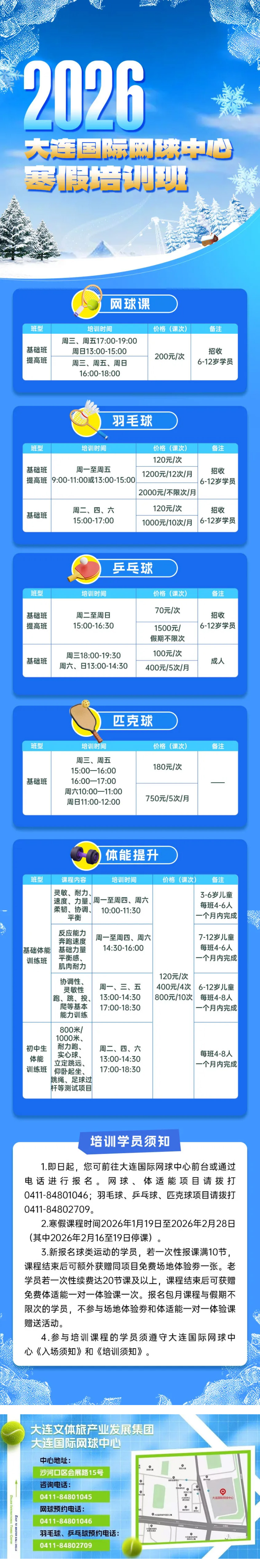 大連國際網(wǎng)球中心2026年寒假培訓(xùn)班