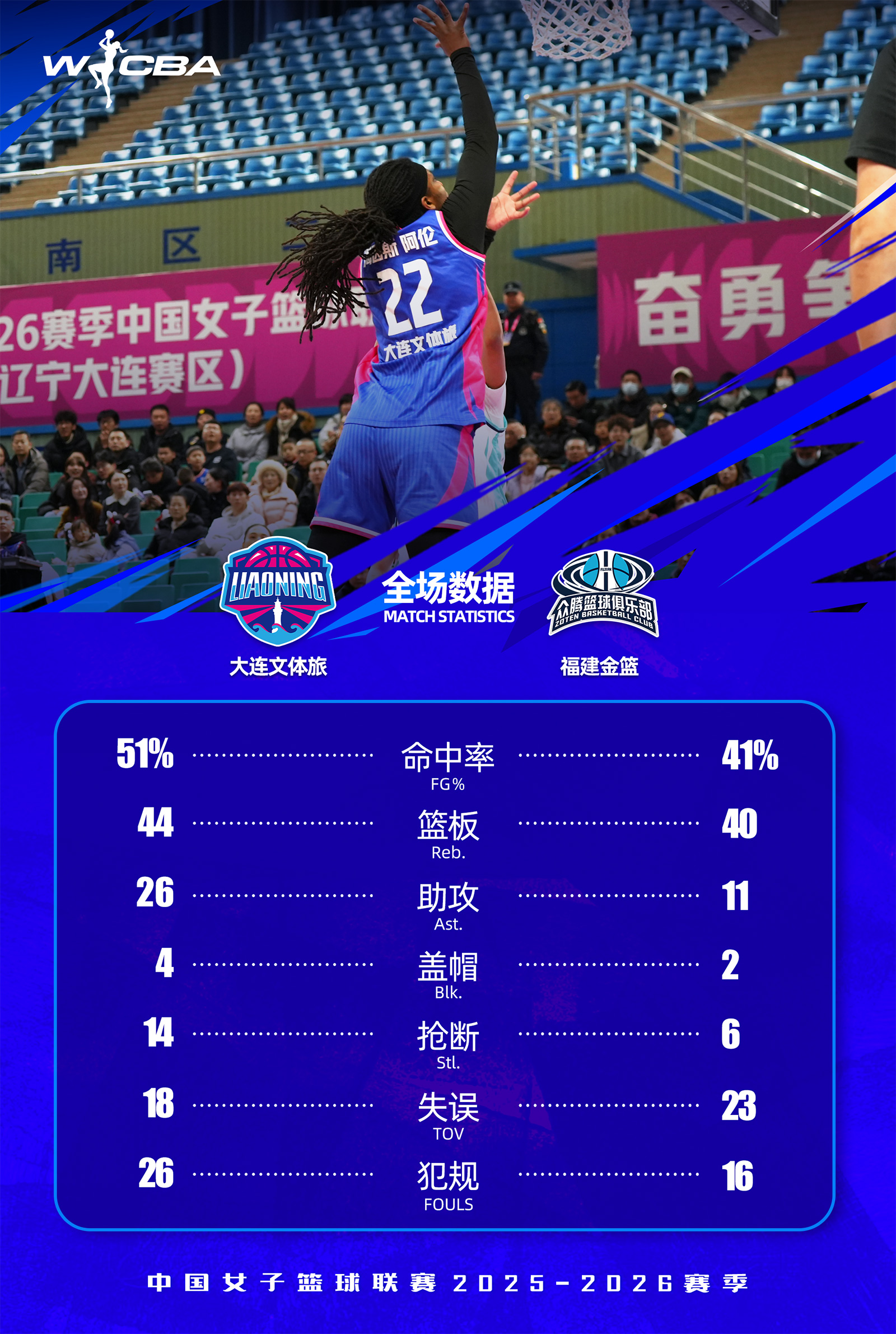北京時間2026年1月29日19時30分,2025-26賽季WCBA常規(guī)賽第十九輪,大連文體旅女籃坐鎮(zhèn)主場迎戰(zhàn)福建金籃女籃。全場比賽,大連文體旅女籃從開場便展現(xiàn)強大統(tǒng)治力,始終掌控比賽節(jié)奏。最終,大連文體旅女籃98:79福建金籃女籃,以一場酣暢淋漓的大勝回饋主場球迷。