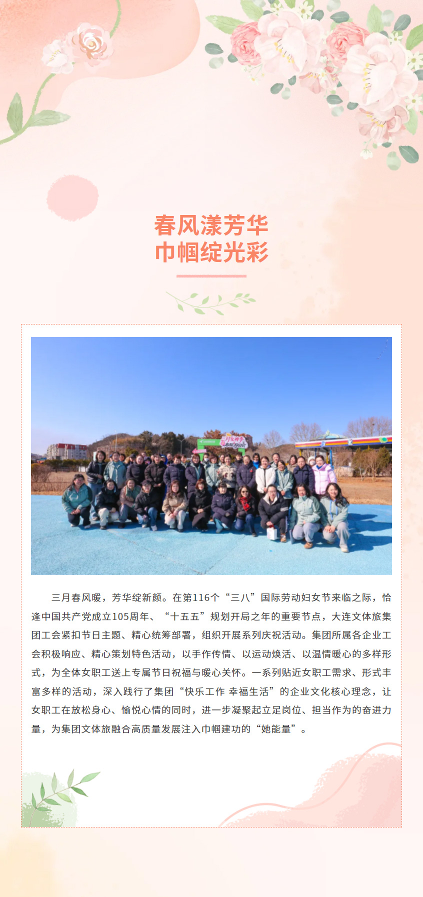 大連文體旅集團(tuán)開(kāi)展慶?!叭恕眹?guó)際婦女節(jié)系列活動(dòng)