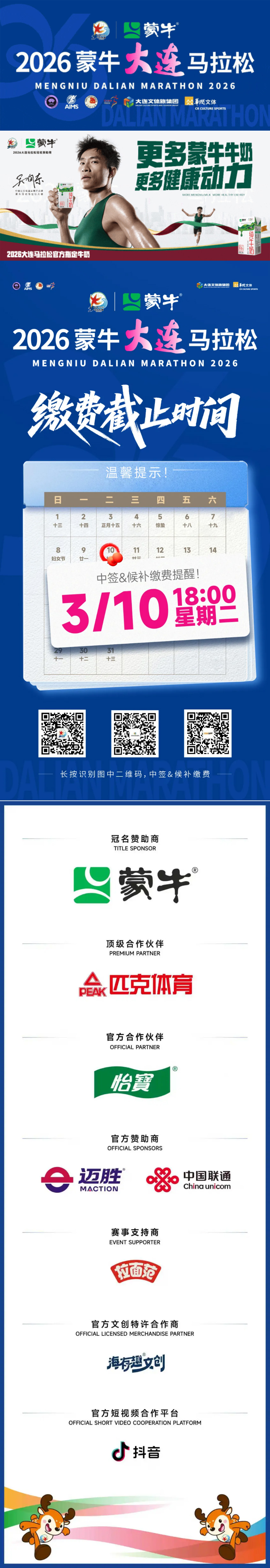 2026蒙牛大連馬拉松中簽&候補(bǔ)繳費今日截止