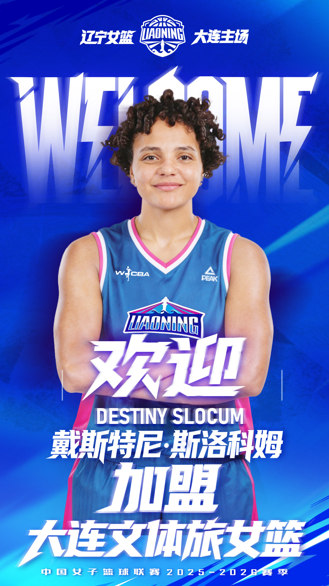 歡迎戴斯特尼?斯洛科姆加入大連文體旅女籃大家庭!期待她憑借經(jīng)驗與技能,為球隊后場注入強勁動力,帶領(lǐng)球隊在季后賽實現(xiàn)突破!