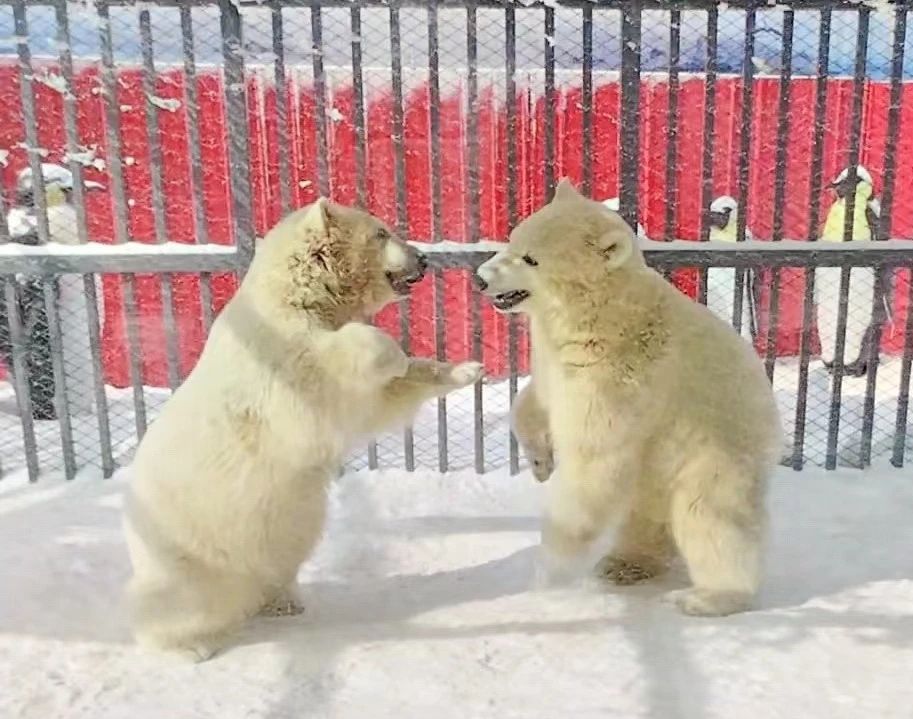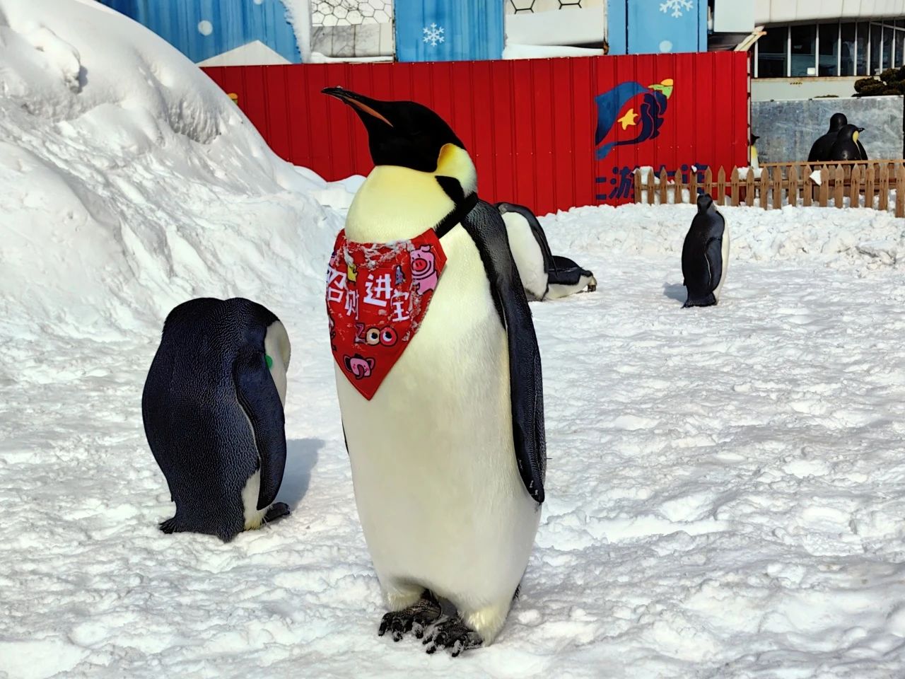憨態(tài)可掬的北極熊“團(tuán)子”、“圓子”與南極帝企鵝們?cè)缭缇统鲩T迎客,與游客一起慶祝小年的到來。