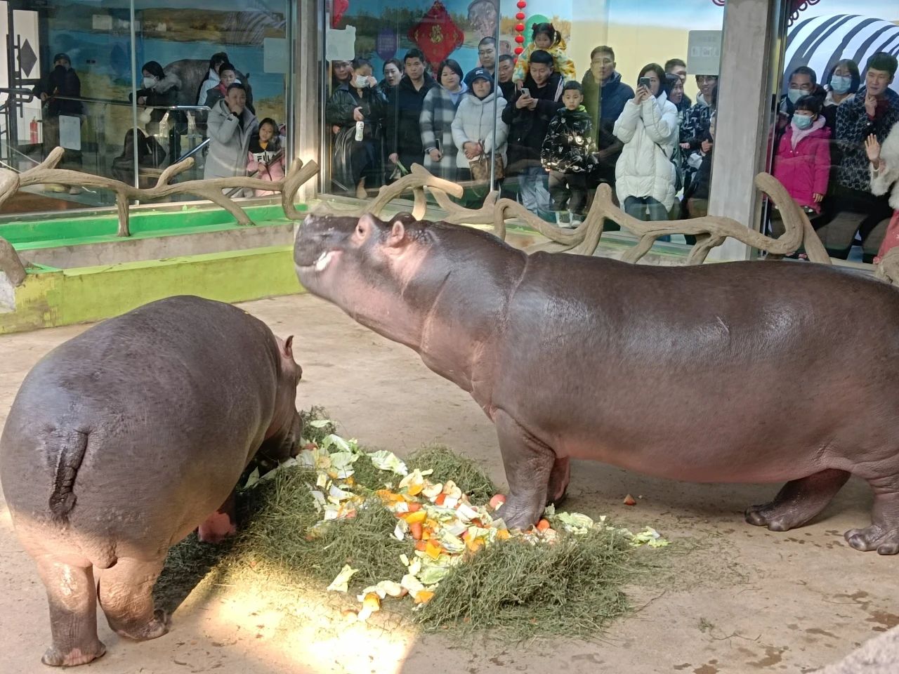 新春佳節(jié),小動物們也有屬于自己的節(jié)日福利,熊貓三寶的豪華版竹制二層蒸屜大餐、小熊貓家族的果蔬套餐、金絲猴家族的各色水果套餐、河馬寶寶的“全瓜宴”等,動物家族都品嘗到了屬于自己造型精美、營養(yǎng)豐富的新春大餐,它們大快朵頤的萌態(tài)不時引來游客們的歡聲笑語!