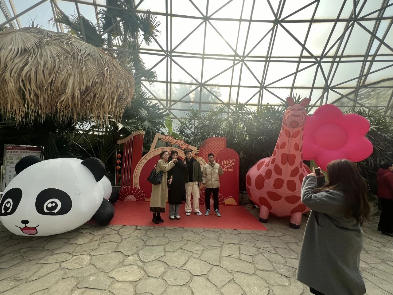 可愛的動物“膨脹家族”現(xiàn)身多個主題展館,大熊貓等充氣氣模在節(jié)日里盡情“收割”快樂,游客們紛紛與它們打卡合影拍照留下最美好的新春印記。