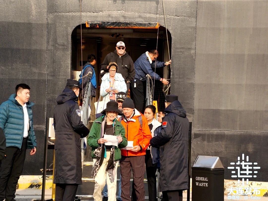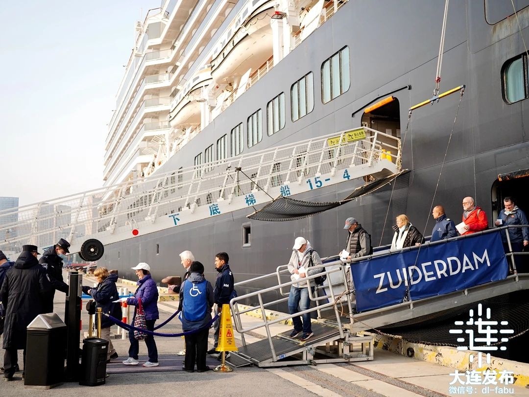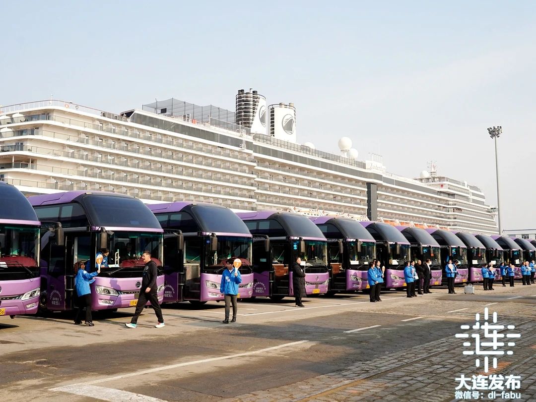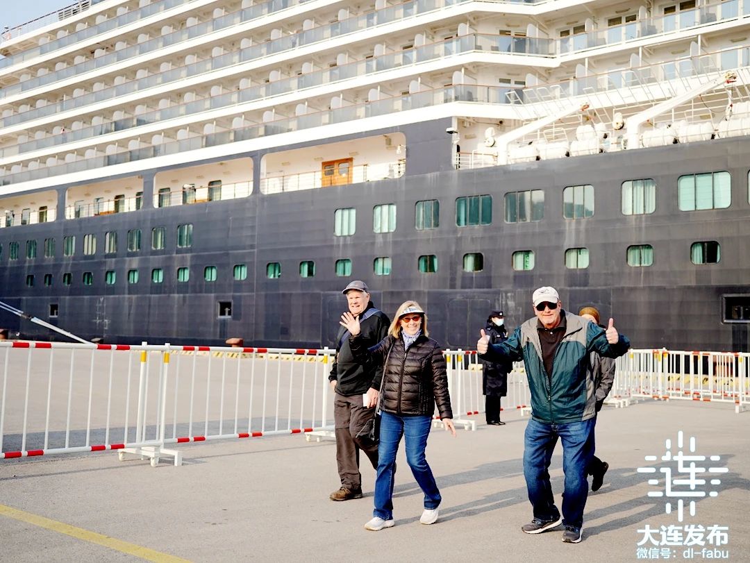 在熱情洋溢的歡迎儀式中,游客們興致勃勃離船上岸,開啟“遇見大連”的觀光游覽、入戶家訪、購物休閑等多條線路訪問之旅。