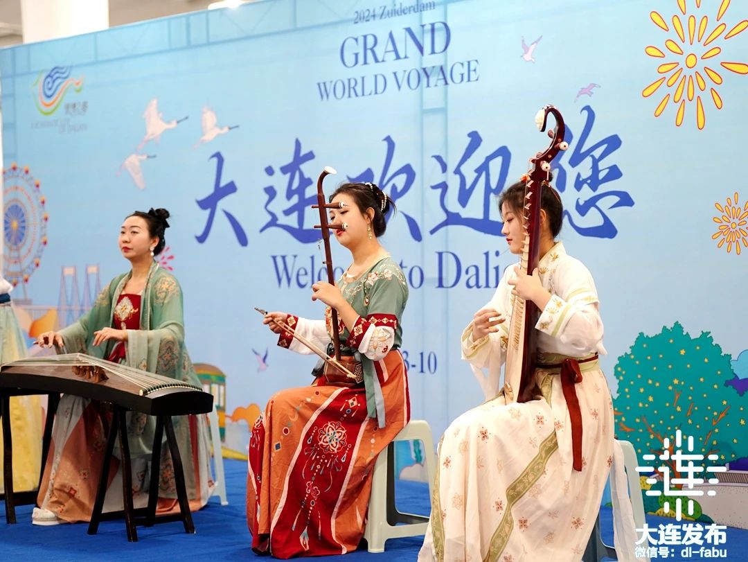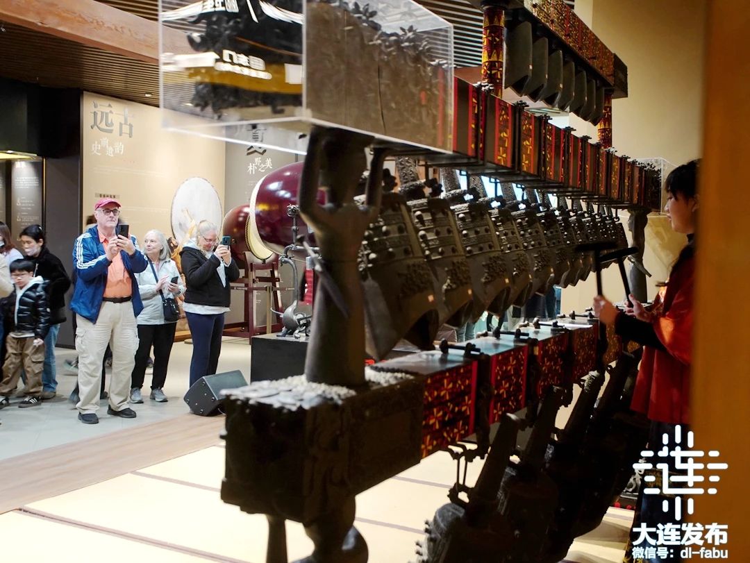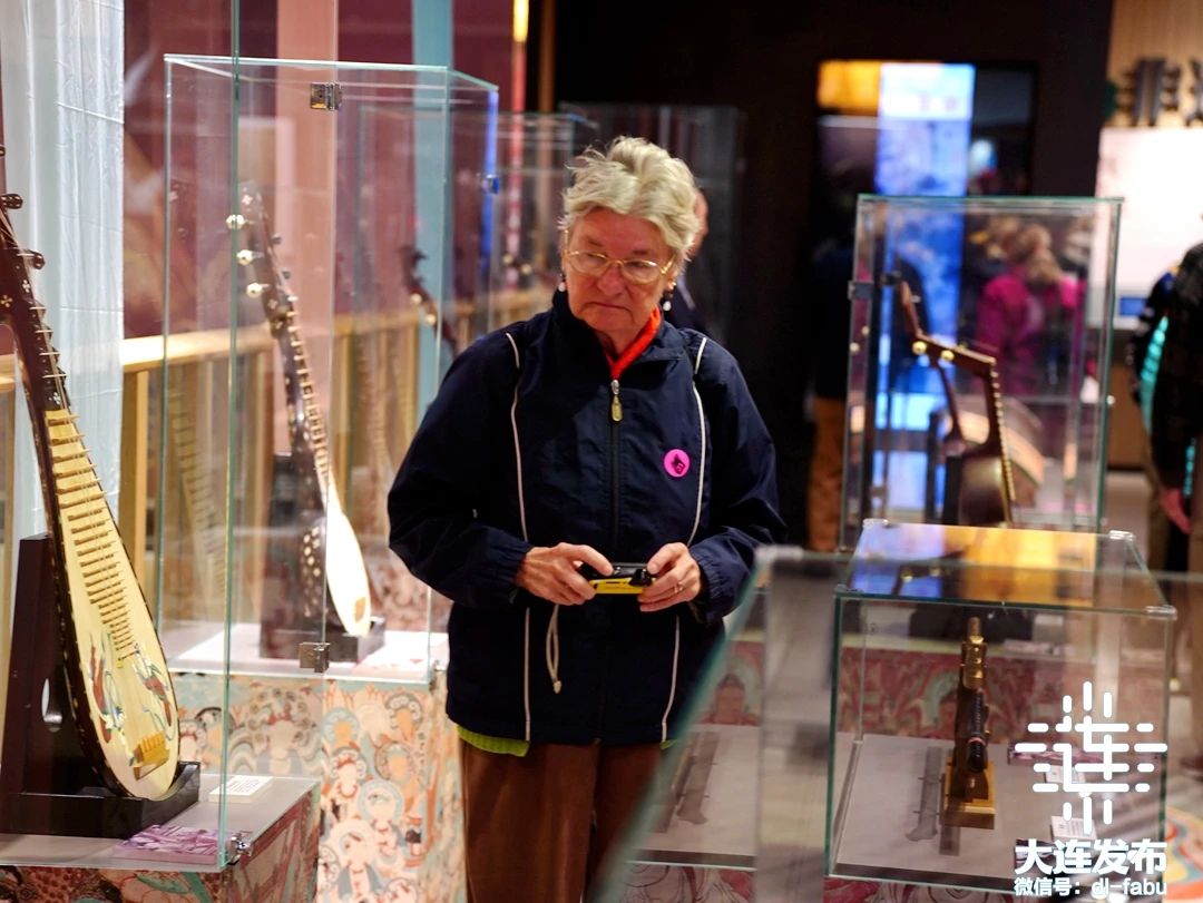 在大連城市音樂館所屬東方音樂文化博物館里,“翠德丹”號的游客們遇見了一個文化底蘊深厚的大連?,F(xiàn)場,仿制敦煌壁畫樂器、京劇臉譜、編鐘等展陳引起游客們的濃厚興趣,大家紛紛拿出手機拍照,不停地向翻譯詢問這些物品背后的故事。外籍游客丹激動地表示,這是他第一次如此近距離感受中國文化,中華文明是如此璀璨多姿,回去后一定要與家人分享這次難忘的大連之行。