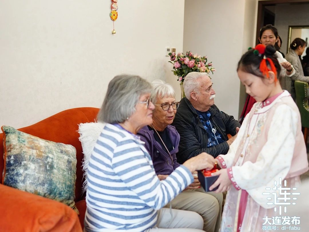 在市民家訪環(huán)節(jié)中,百余位外籍游客走進人民路街道東日社區(qū)和港盛社區(qū)的9戶家庭,與大連市民近距離交流。