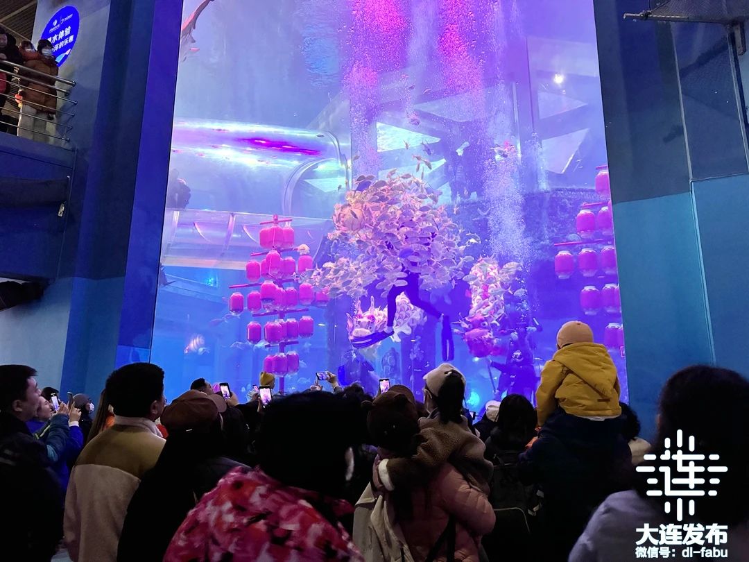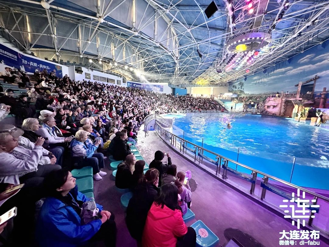 3月10日,大連老虎灘海洋公園內熱鬧非凡,靈動的白鯨、唯美的魚群悠閑游弋,引得外籍游客們紛紛駐足觀賞。海洋表演拉開序幕,伴隨著熱烈的音樂,游客們與演員開心互動,跟著音樂搖擺起來。隨著輕快的開場音樂響起,海豚躍出水面,激起一片水花,贏得了游客們的陣陣掌聲,這一刻的海洋公園成為了歡樂的海洋。
