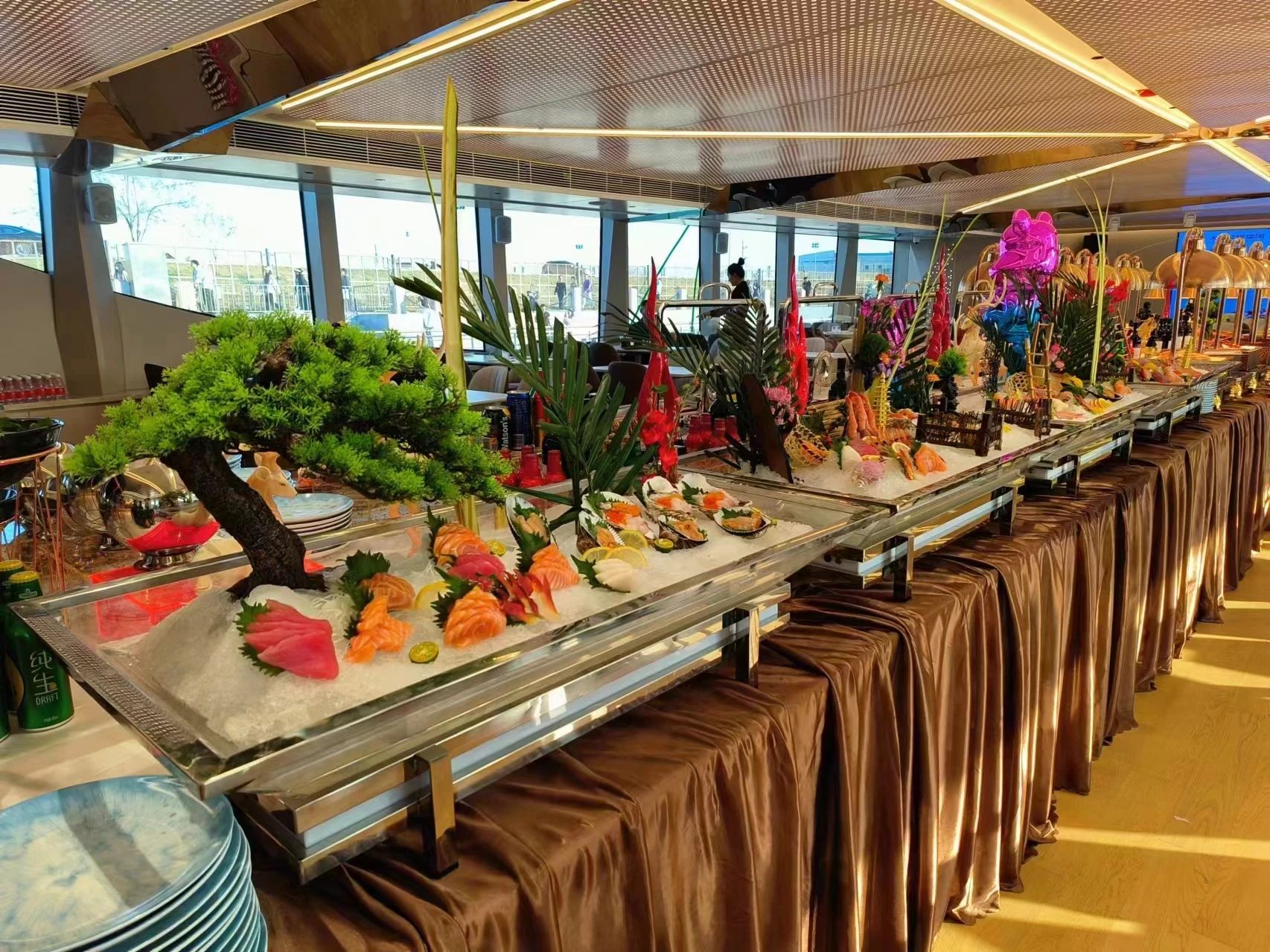 游船中午、晚上開設(shè)海鮮自助餐,就餐后可以提供出航服務(wù),讓大家在乘船觀賞海上風(fēng)光的同時,還可以品嘗到大連地道的海鮮大餐,一站式滿足市民游客吃喝玩樂的全部游玩需求,近距離感受乘風(fēng)破浪,揚帆啟航的獨特魅力。