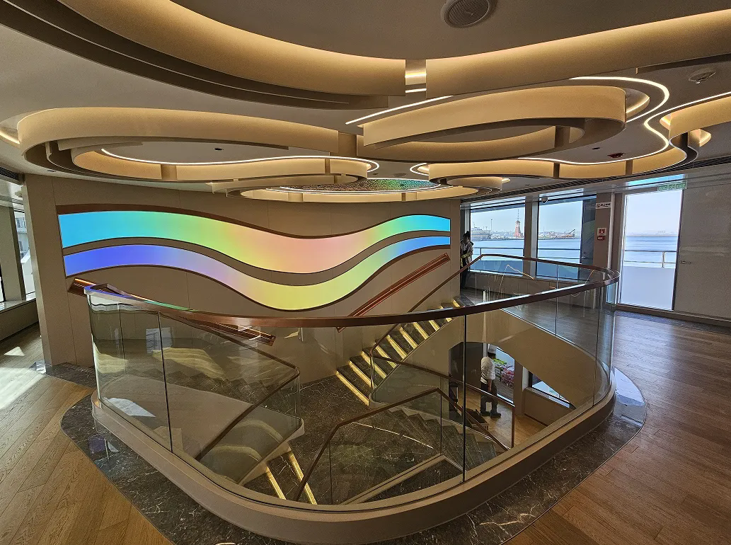 “老虎灘”號(hào)是東北首艘集餐飲、娛樂(lè)、觀光一體的海上大型高端游覽船,游船外觀采用似錦云羅海風(fēng)拂面的寫意造型,呈現(xiàn)出靈動(dòng)優(yōu)雅、激情奔放的律動(dòng)美,展現(xiàn)了大連“浪漫之都”的城市內(nèi)涵。