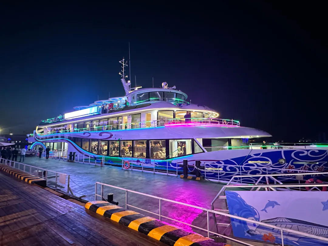 “老虎灘”號(hào)夜航啟航啦,海上游大連的玩法升級(jí),乘船從十五庫(kù)碼頭出發(fā),途徑梭魚灣體育場(chǎng)、大連灣碼頭后,前往港東五街后返航。