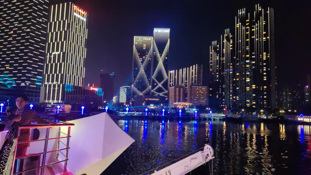 整個(gè)航程不但可以打卡東港夜景,還可以欣賞到搭配不同建筑風(fēng)格所安排的燈光秀表演。