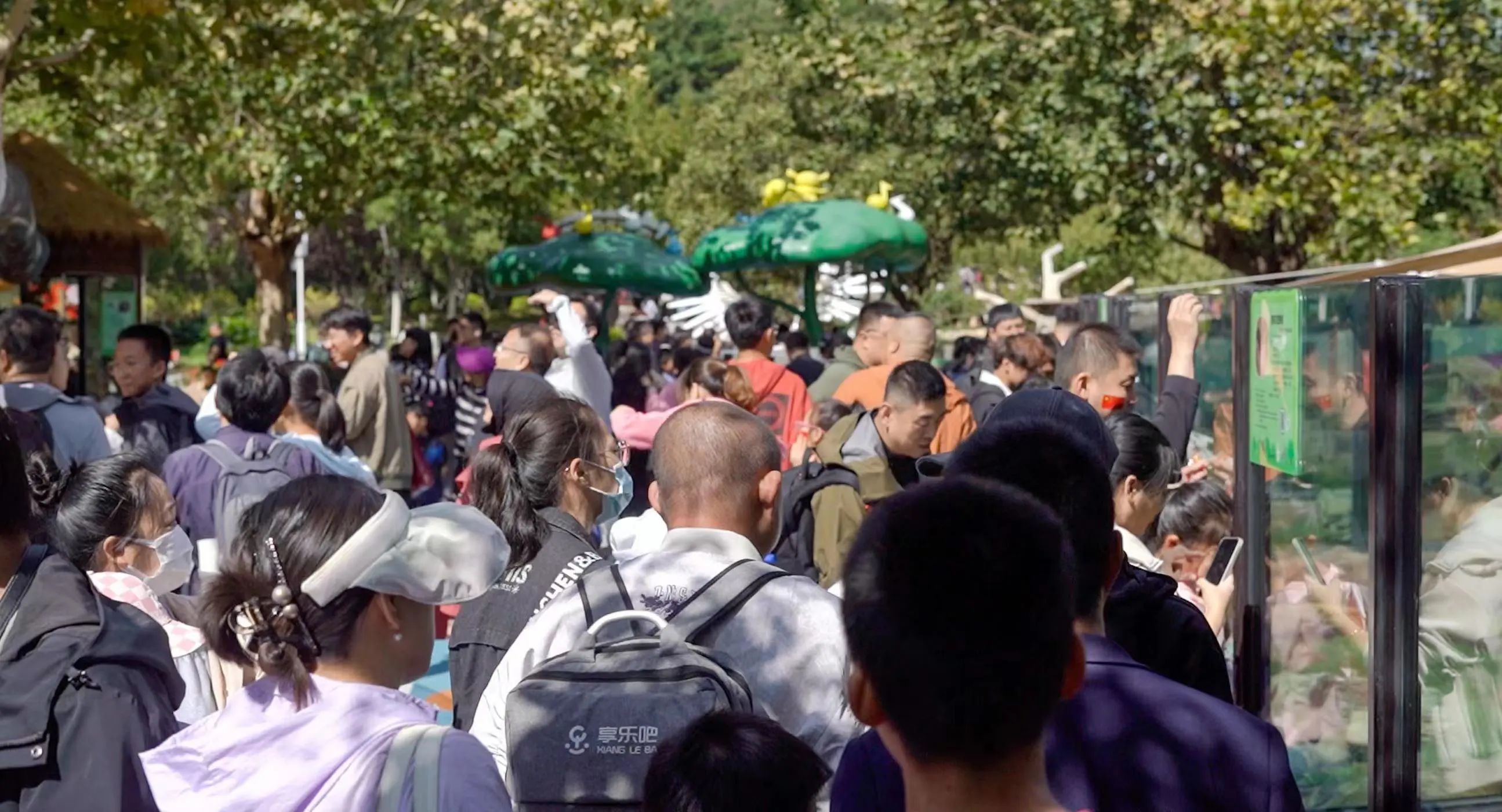 園區(qū)內(nèi)一面面小紅旗在游客手中隨風(fēng)擺動(dòng),歡樂(lè)祥和的國(guó)慶氛圍感瞬間拉滿?!疤鼗萋?lián)萌?FUN玩國(guó)慶”主題活動(dòng)火熱開(kāi)展。紅旗飄飄歡度國(guó)慶,巨型打卡墻送祝?;顒?dòng)區(qū)游客們接踵而至,大家紛紛寫(xiě)下祝福語(yǔ)為偉大祖國(guó)慶生;“最美ZOO福獻(xiàn)祖國(guó)”抖音話題互動(dòng)吸引了大量游客積極參與,線上播放量達(dá)到47.5萬(wàn);河馬“姐弟”、小動(dòng)物村里慵懶系流量明星“卡皮巴拉”等網(wǎng)紅萌獸家族吸引了眾多游客駐足圍觀,拍照合影。連續(xù)三天的ZOO直播線上帶領(lǐng)游客近距離感受大熊貓三寶、金絲猴、小動(dòng)物村萌寶們的節(jié)日幸福時(shí)光,云端一起歡度國(guó)慶。