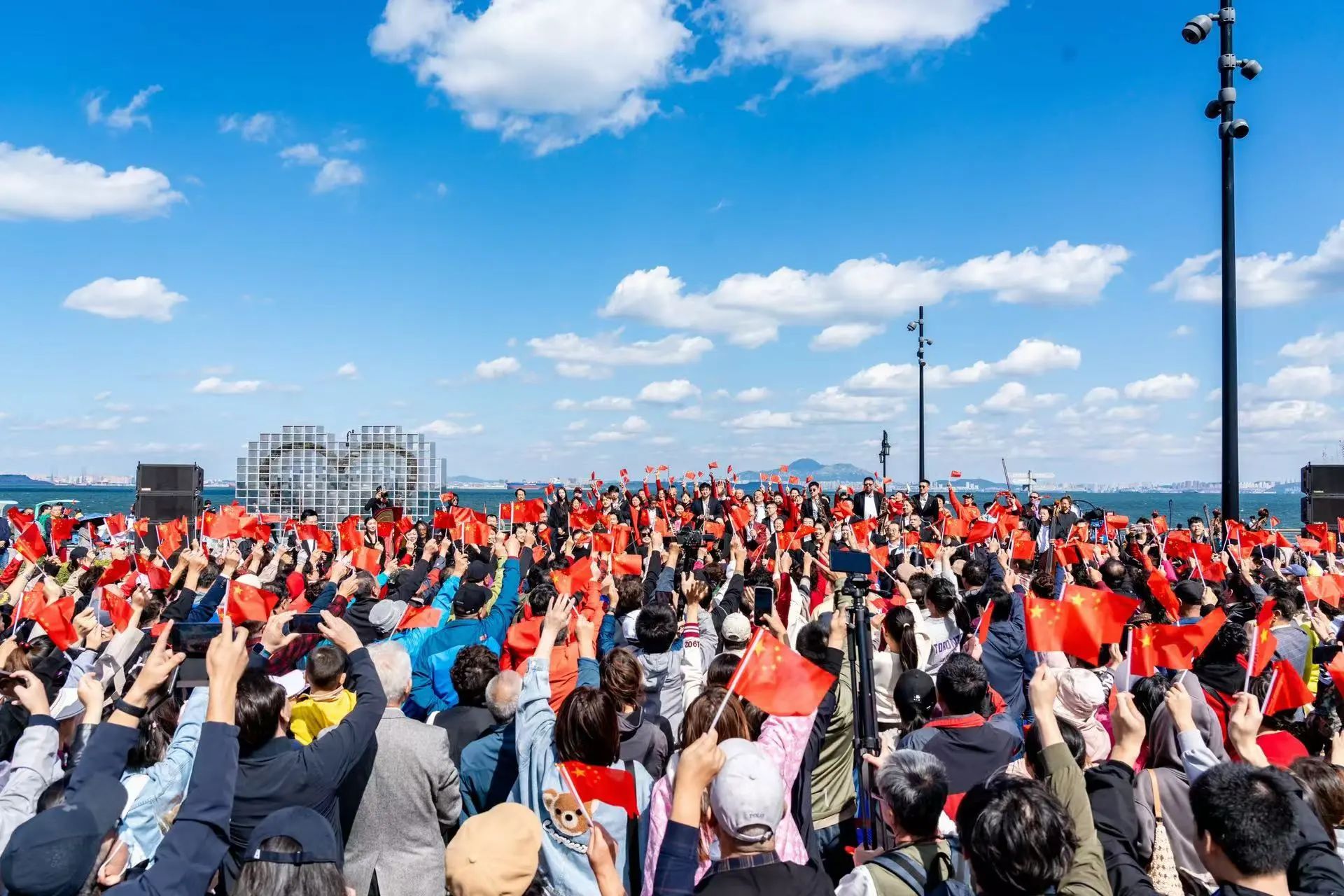 當(dāng)《軍港之夜》這一熟悉的旋律在旅順軍港上空響起,吸引了景區(qū)眾多游客駐足停留欣賞,《愛(ài)我中華》的古箏和手風(fēng)琴演奏為快閃活動(dòng)點(diǎn)燃了激情;軍港游園景區(qū)內(nèi)的艦島上來(lái)自旅順海軍某部的戰(zhàn)士們展示了海軍旗語(yǔ)的獨(dú)特魅力,他們用旗語(yǔ)揮舞出:祝福祖國(guó)生日快樂(lè),表達(dá)了海軍將士們保家衛(wèi)國(guó)的堅(jiān)定信念和海軍精神;隨著悠揚(yáng)的《我的祖國(guó)》音樂(lè)聲響起,一群手舉國(guó)旗的小游客在老師的帶領(lǐng)下齊聲歌唱,游客們被這份濃厚的愛(ài)國(guó)氛圍所感染,紛紛從四面八方匯聚而來(lái)駐足歌唱,在旅順軍港游園景區(qū)一起唱響《我和我的祖國(guó)》,共同為祖國(guó)獻(xiàn)上誠(chéng)摯的祝福。