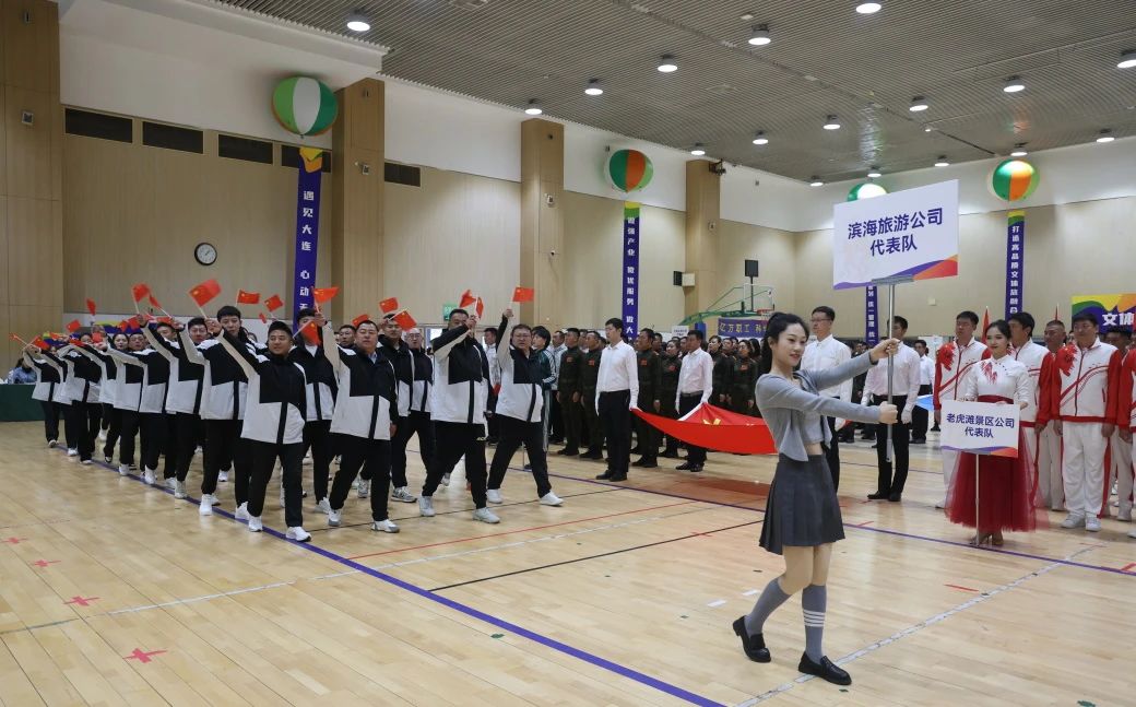 伴隨著雄壯激昂的運(yùn)動(dòng)員進(jìn)行曲,國旗、集團(tuán)司旗2個(gè)方陣以及集團(tuán)所屬企業(yè)、總部機(jī)關(guān)9個(gè)代表隊(duì)依次入場,他們步伐整齊、精神飽滿、口號嘹亮,叫響“大連文旅服務(wù)”品牌,展現(xiàn)大連文旅領(lǐng)軍企業(yè)形象!