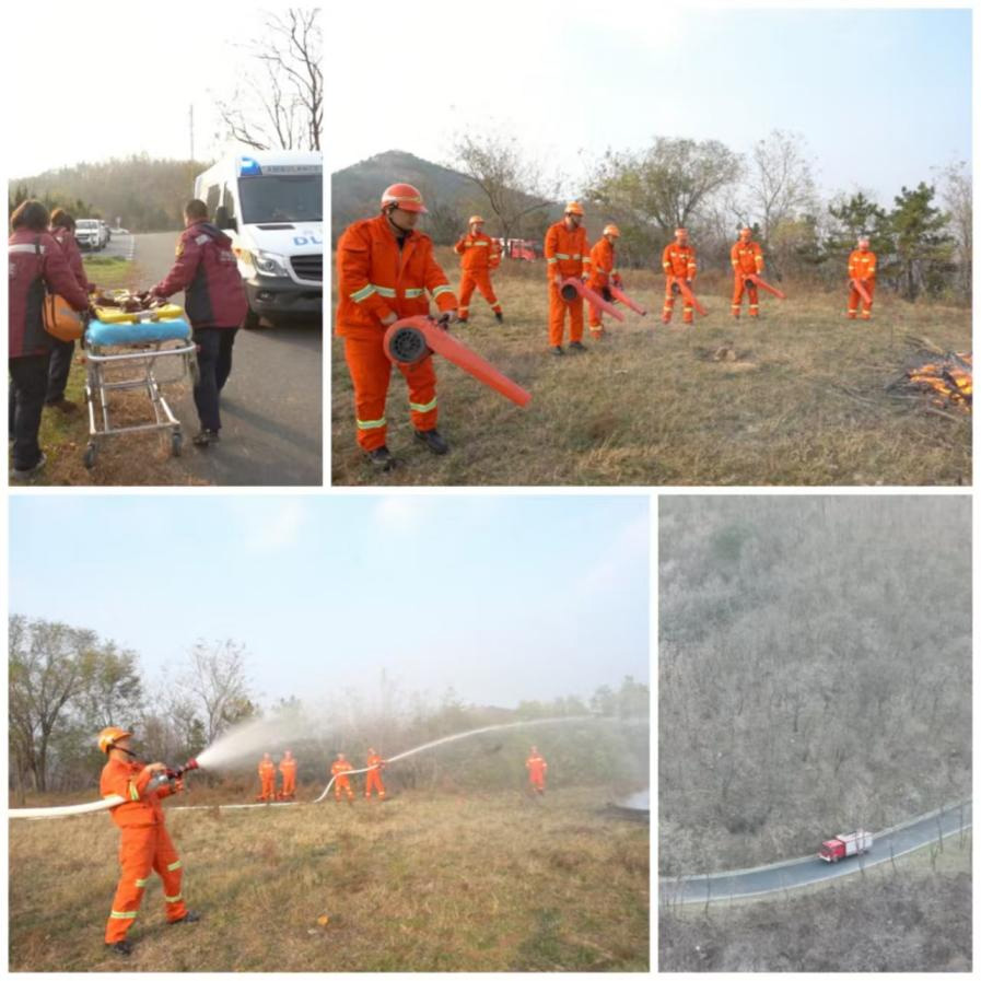 模擬森林火災應急滅火環(huán)節(jié),巡林隊員發(fā)現(xiàn)火情第一時間向森林防火指揮部報告并設立安全警示區(qū),指揮部迅速啟動應急預案,各應急小組迅速行動,迅速抵達火災現(xiàn)場,采取風力滅火器與消防水車組合的方式完成滅火。同時趕到現(xiàn)場的醫(yī)療救護人員嚴陣以待,確保及時救治傷員。