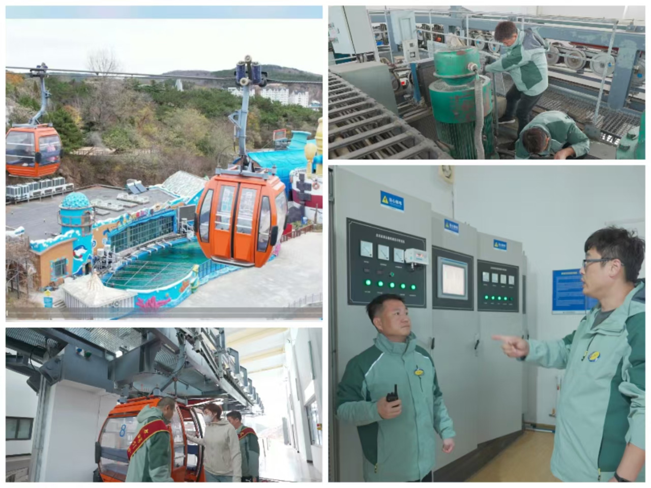 模擬空中索道事故應急救援環(huán)節(jié),工作人員第一時間研判故障原因,同時向上級報告,果斷采取輔機救援的方式及時解救并安撫被困游客。