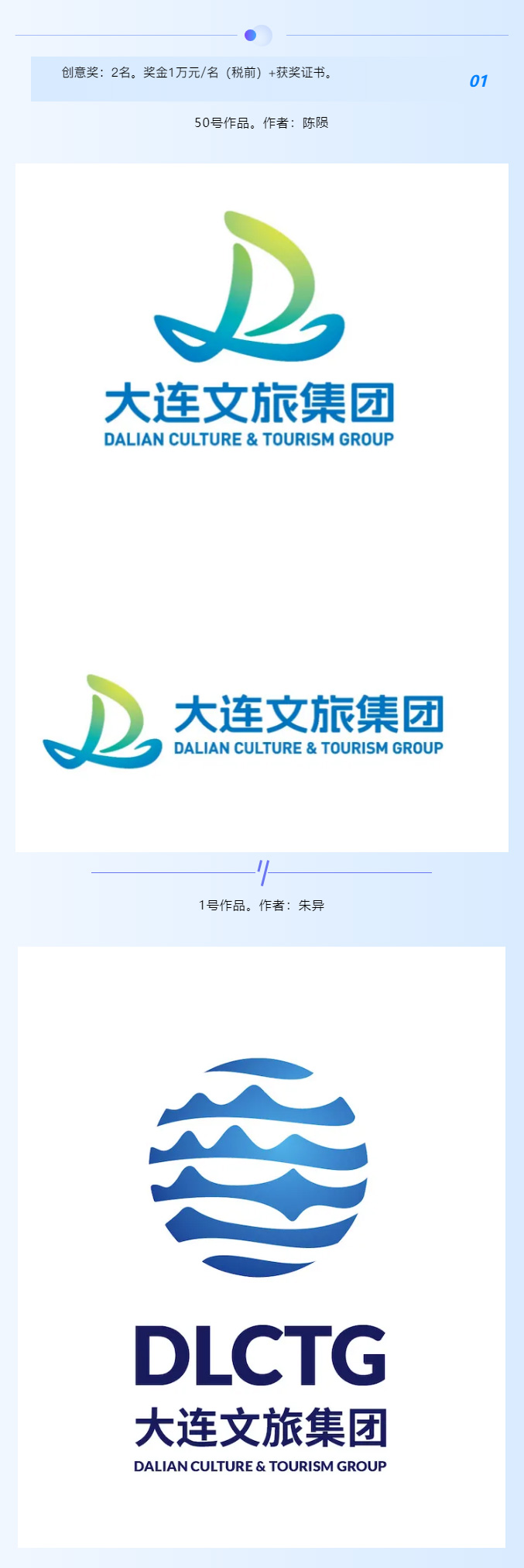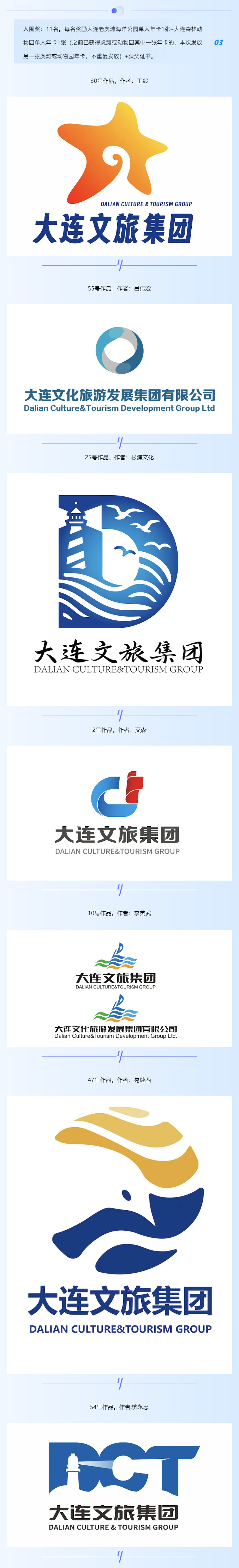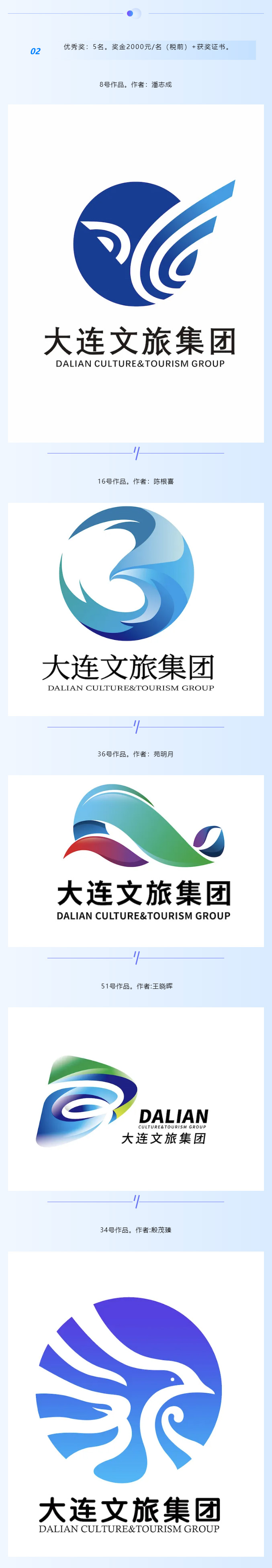 大連文旅集團企業(yè)標志(logo) 征集活動自從開展以來,獲得了社會各界的廣泛關(guān)注以及熱情參與。最終入圍的18件作品經(jīng)過評選,目前入選獎空缺,其他獎項結(jié)果公示如下: