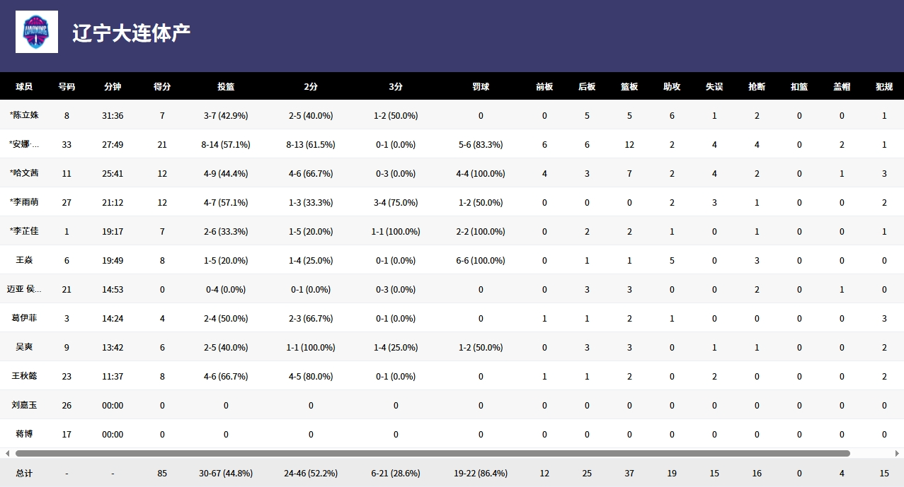 WCBA戰(zhàn)報 | 兩連勝!遼寧大連體產85:60戰(zhàn)勝天津冠嵐