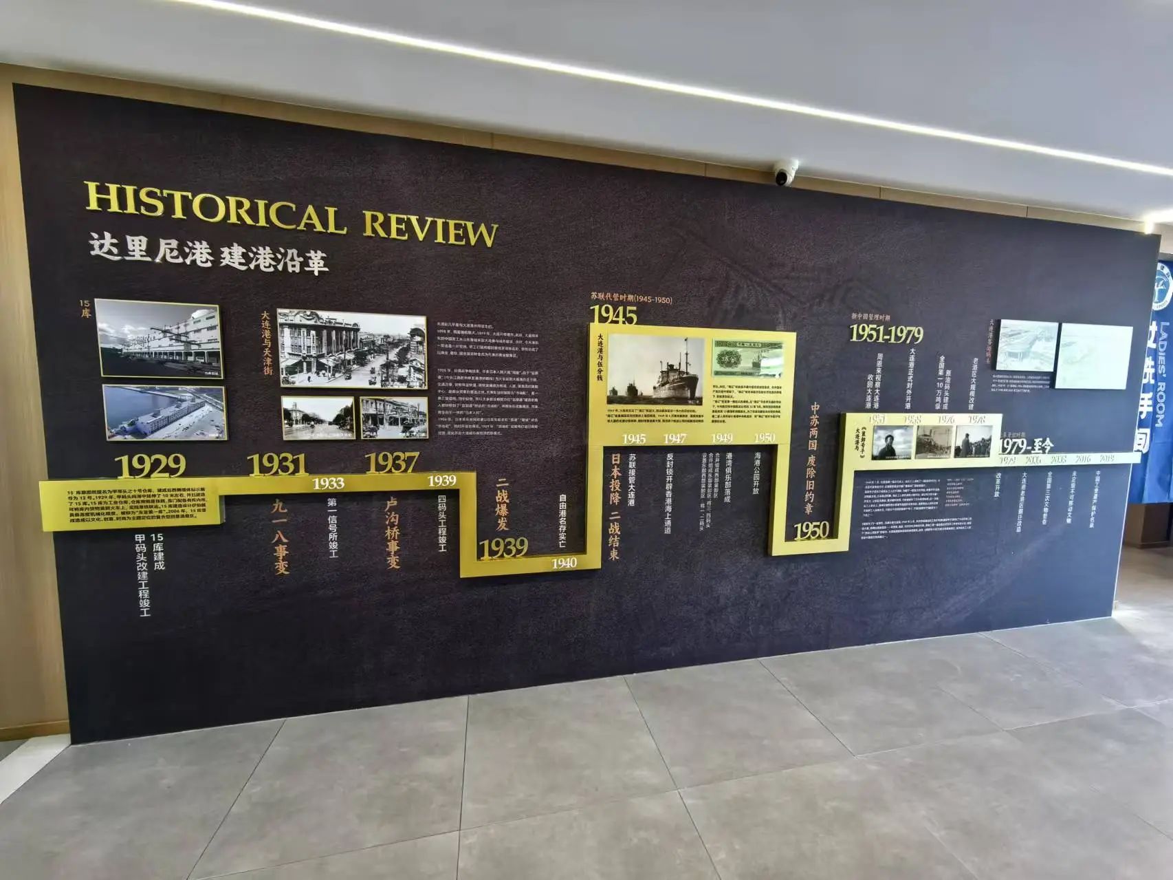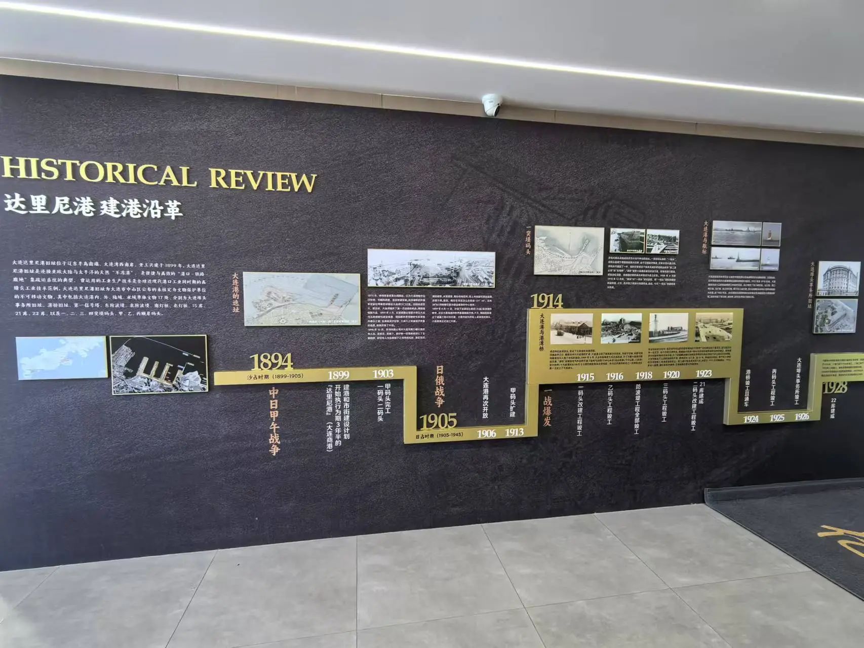 歷史文化墻位于文化體育公園場(chǎng)館主樓走廊兩側(cè),長(zhǎng)12米,以時(shí)間軸為脈絡(luò),將達(dá)里尼港的歷史變遷娓娓道來(lái),同時(shí)也展示了大連港在經(jīng)濟(jì)文化領(lǐng)域的發(fā)展成就,以及廣大民眾在歷史洪流中所作出的不可磨滅的貢獻(xiàn)。