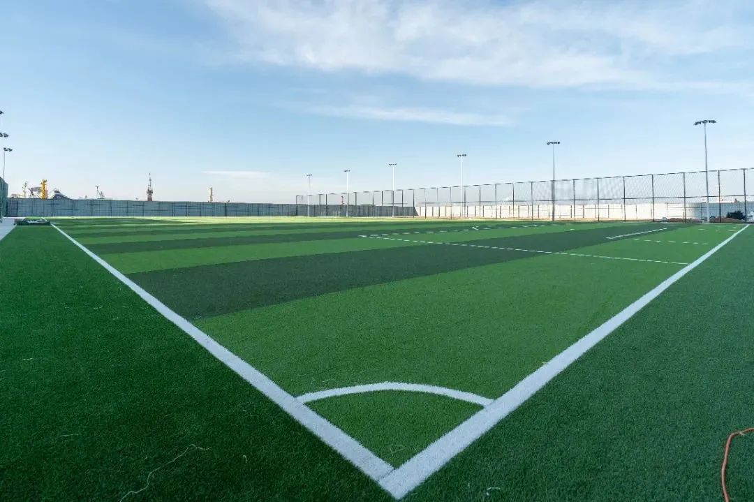 室外足球場(chǎng)為11人制標(biāo)準(zhǔn)足球訓(xùn)練場(chǎng),場(chǎng)地外圈為雙排標(biāo)準(zhǔn)塑膠訓(xùn)練跑道。