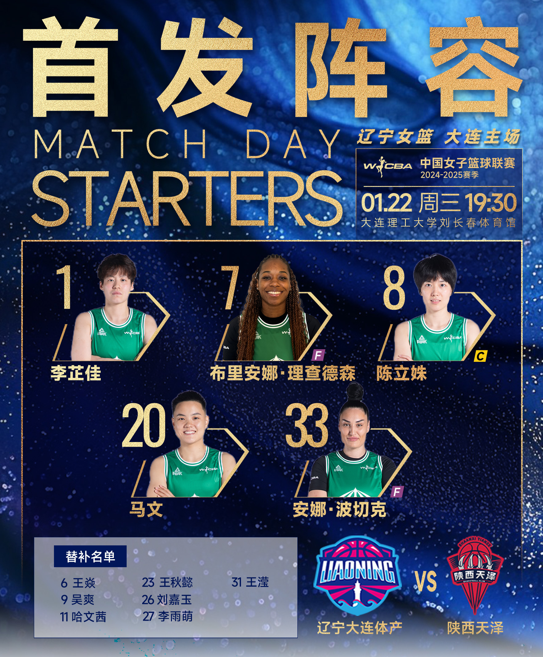 北京時間2025年1月20日19:30,2024-2025賽季W(wǎng)CBA常規(guī)賽第二十七輪賽事開賽,遼寧大連體產(chǎn)女籃主場對陣陜西天澤女籃。