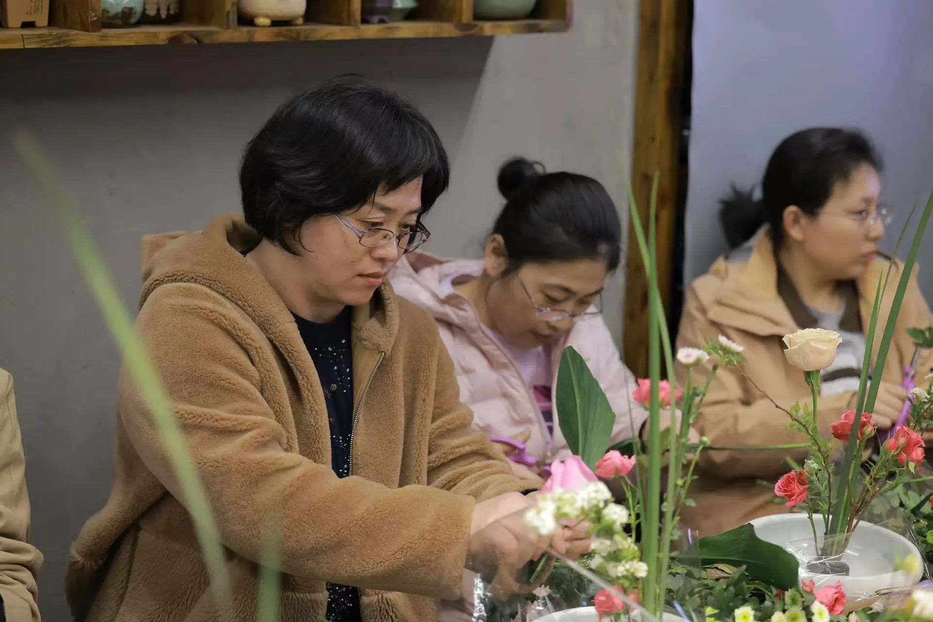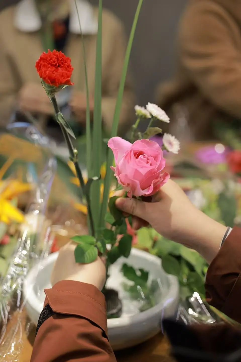 東港公司與星海會展公司分別開展“傳統(tǒng)插花”與“螺鈿胸針制作”活動。