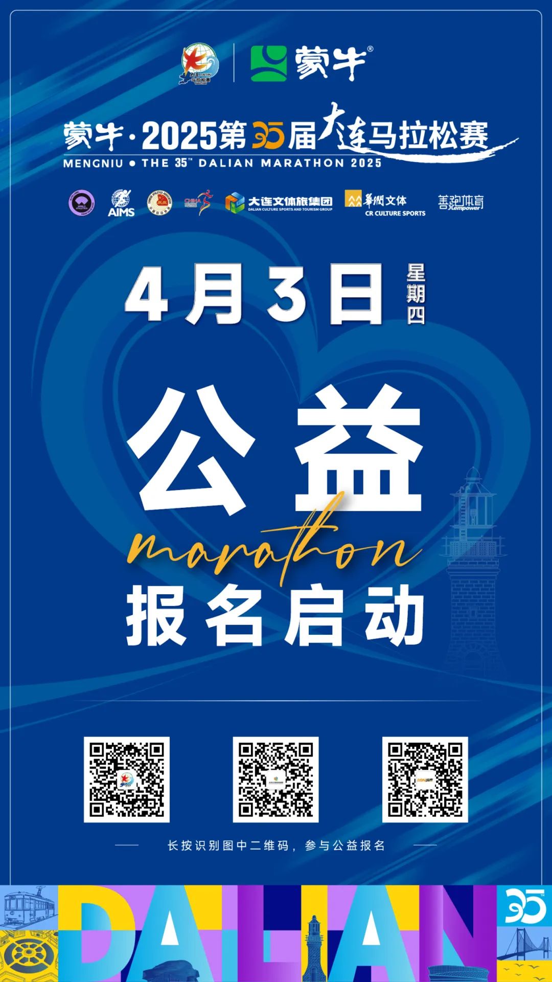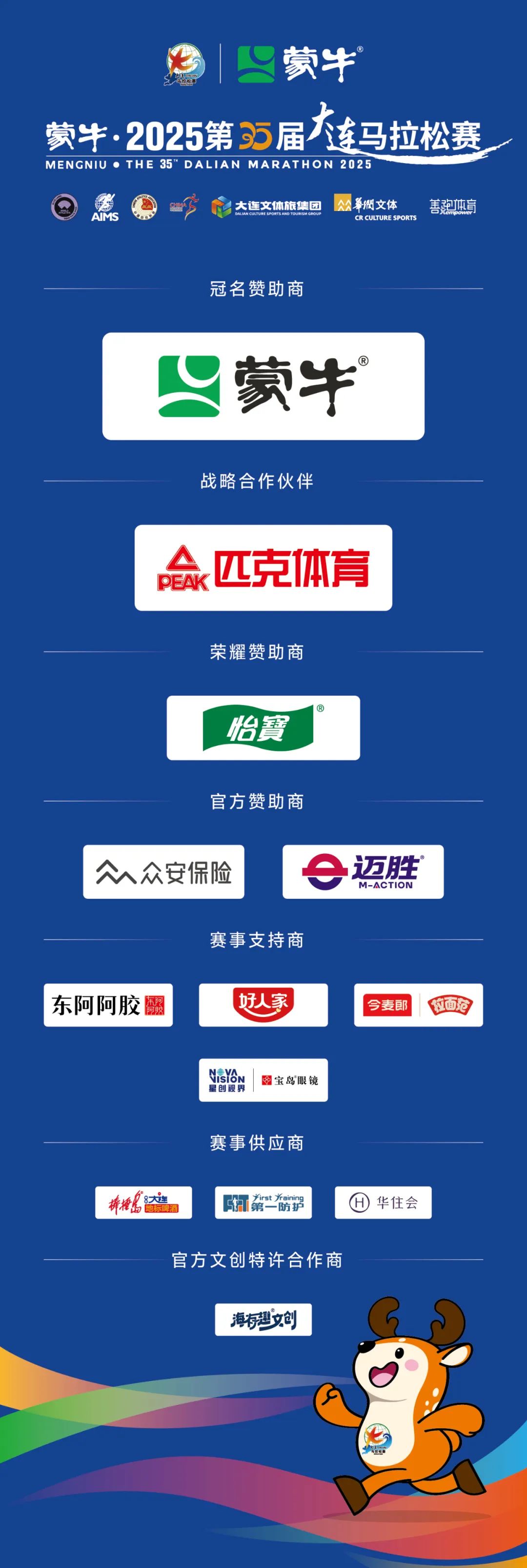 蒙牛·2025第35屆大連馬拉松賽由大連文體旅產(chǎn)業(yè)發(fā)展集團(tuán)有限公司承辦,華潤(rùn)文化體育發(fā)展有限公司和南京善跑體育科技有限公司聯(lián)合運(yùn)營(yíng)。