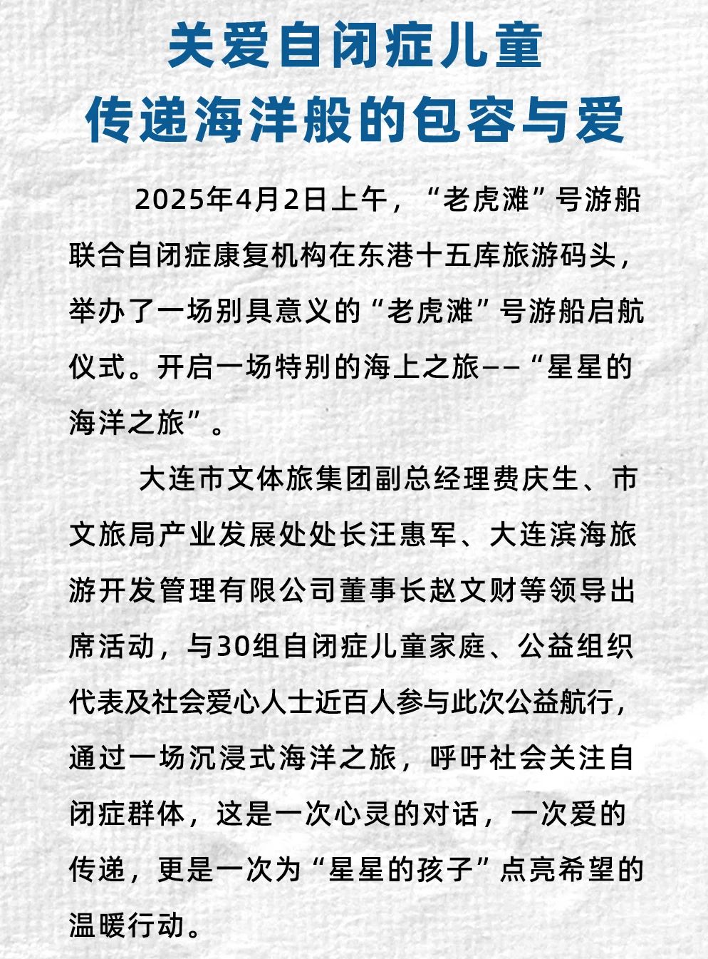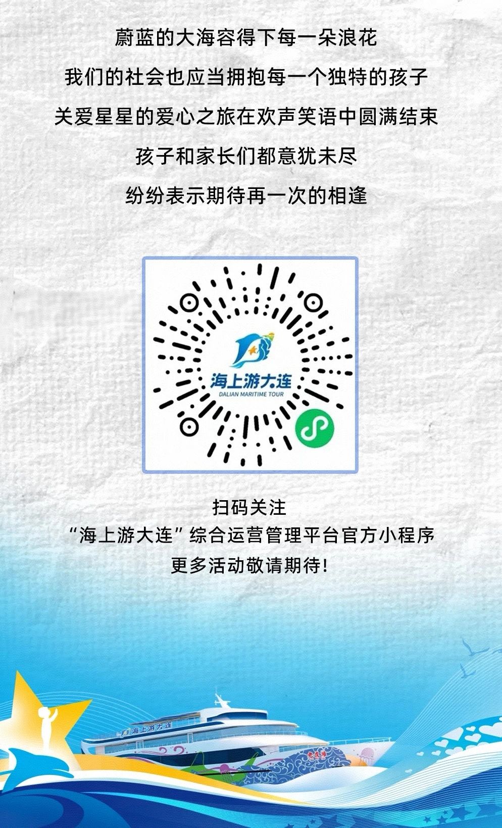 海上游大連“老虎灘”號愛心啟航!