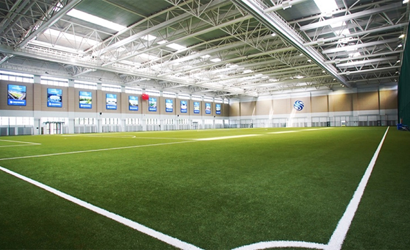 大連足球青訓基地是全國唯一一個同時擁有兩塊室內(nèi)標準球場的足球訓練基地,配備暖氣、照明和噴淋系統(tǒng),可滿足四季比賽、訓練需求。