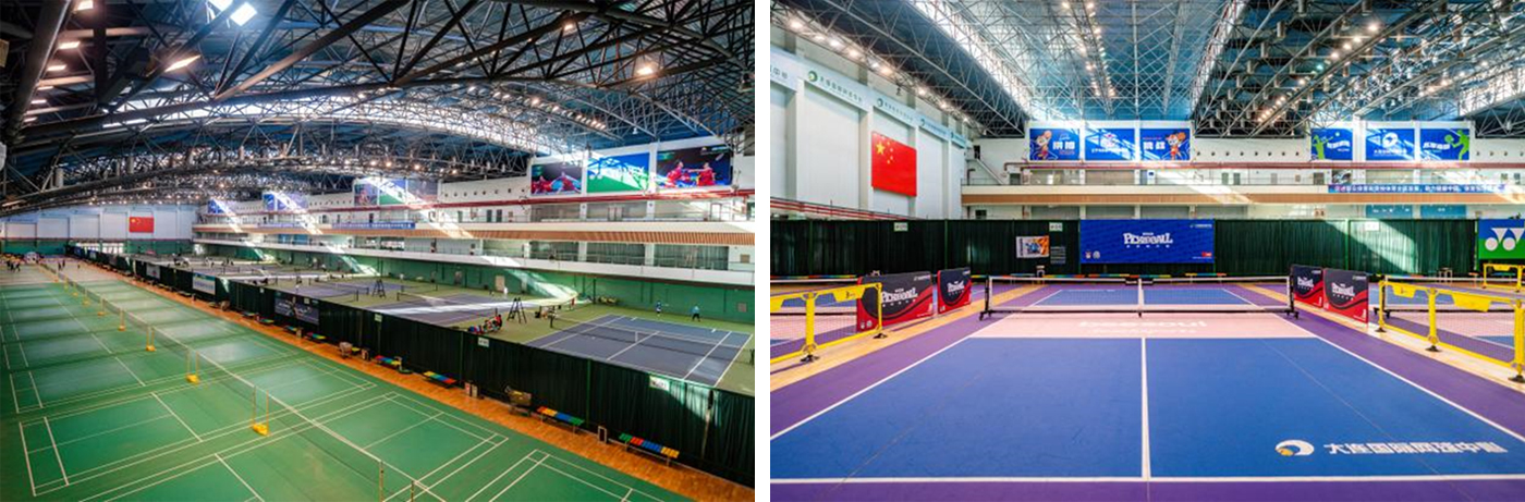 擁有室外標(biāo)準(zhǔn)雙打網(wǎng)球場(chǎng)4片,室內(nèi)標(biāo)準(zhǔn)雙打網(wǎng)球場(chǎng)8片,室內(nèi)標(biāo)準(zhǔn)雙打羽毛球場(chǎng)15片,匹克球場(chǎng)4片,乒乓球6臺(tái)。體育用品專賣(mài)店、專用停車(chē)位等相關(guān)設(shè)施配置齊全。