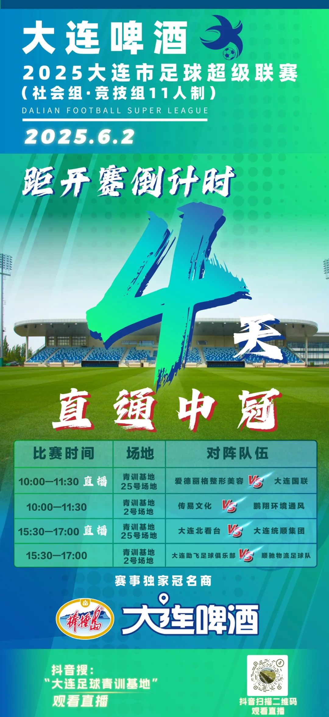 大連啤酒·2025大連市足球超級(jí)聯(lián)賽(社會(huì)組·競(jìng)技組11人制)距開賽倒計(jì)時(shí)4天