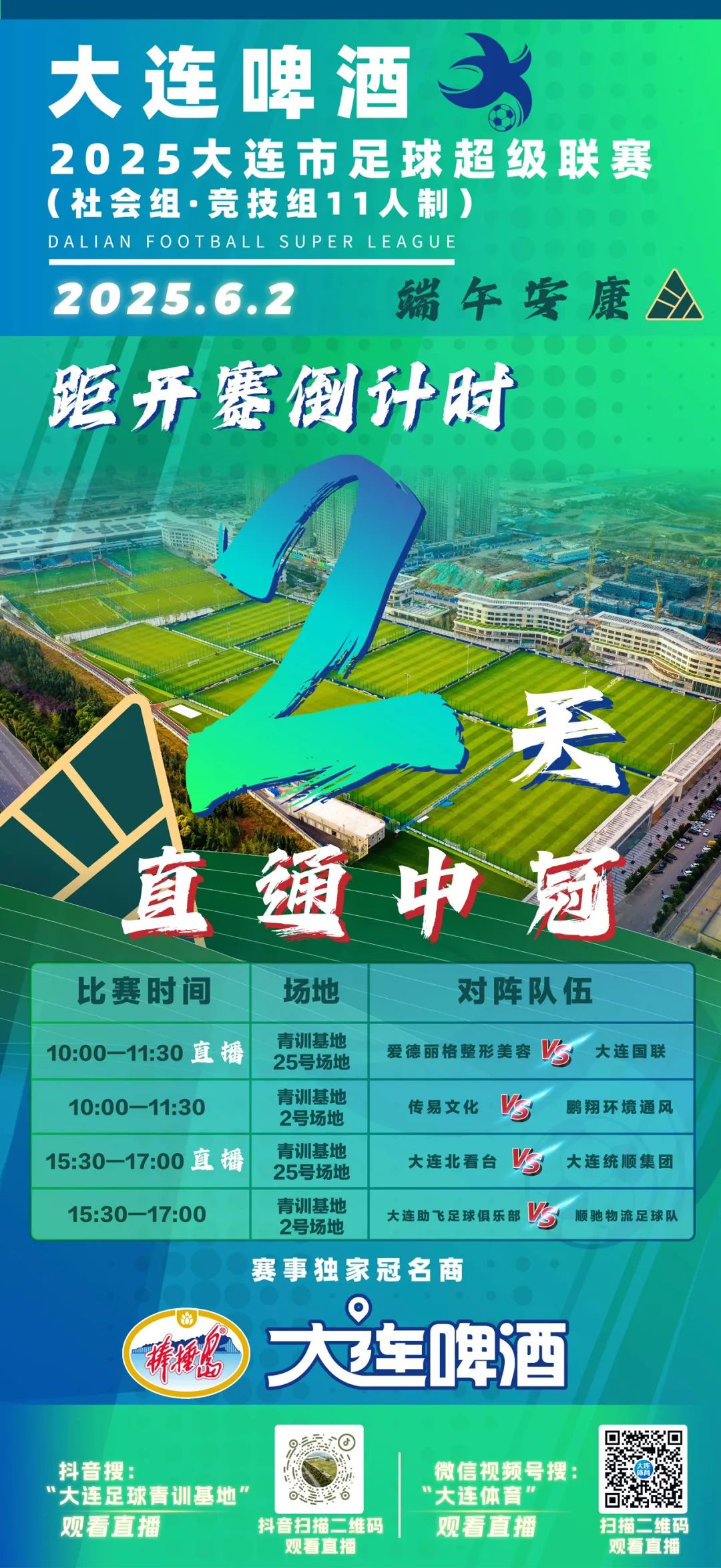 大連啤酒·2025大連市足球超級聯(lián)賽(社會組·競技組11人制)距開賽倒計(jì)時(shí)2天
