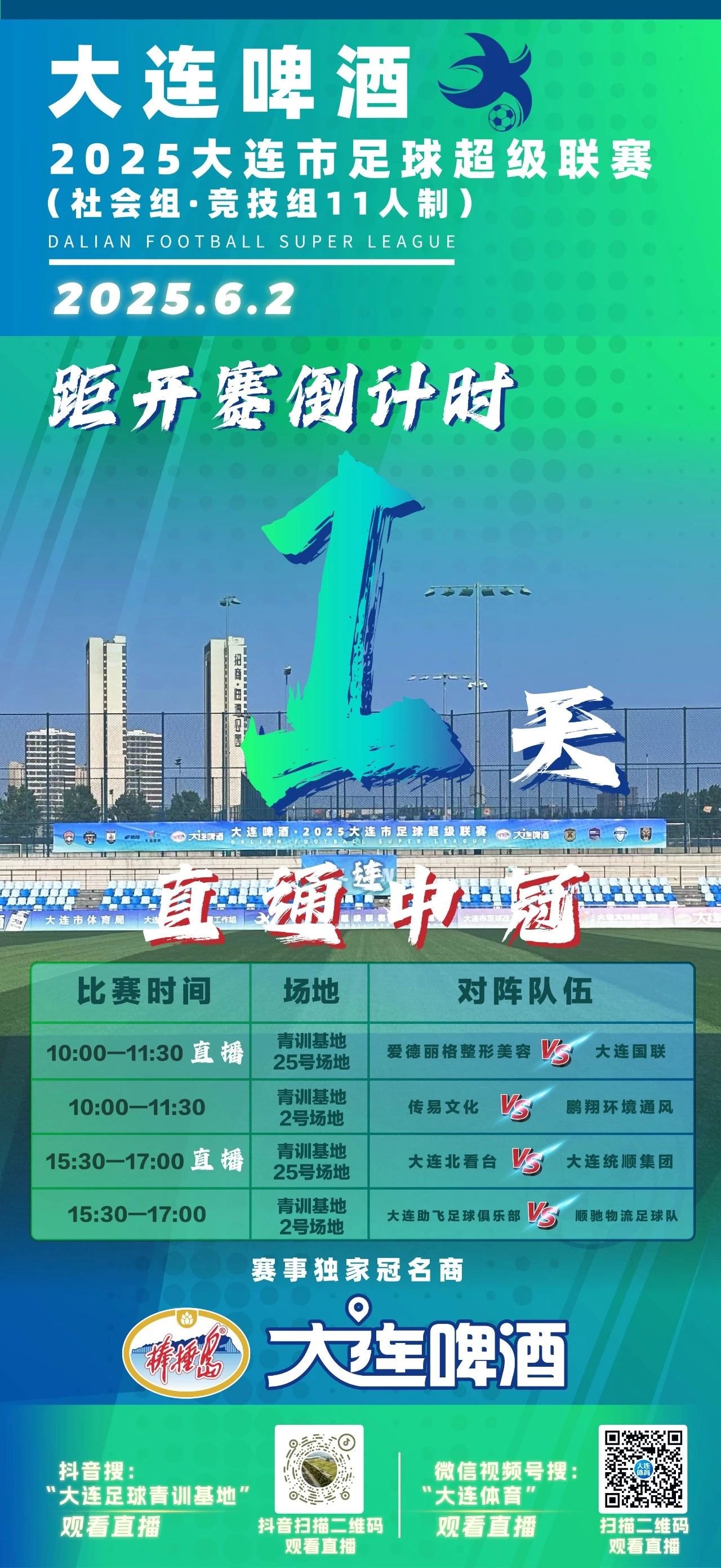 距開賽倒計時1天!大連啤酒·2025大連市足球超級聯(lián)賽(社會組·競技組11人制)