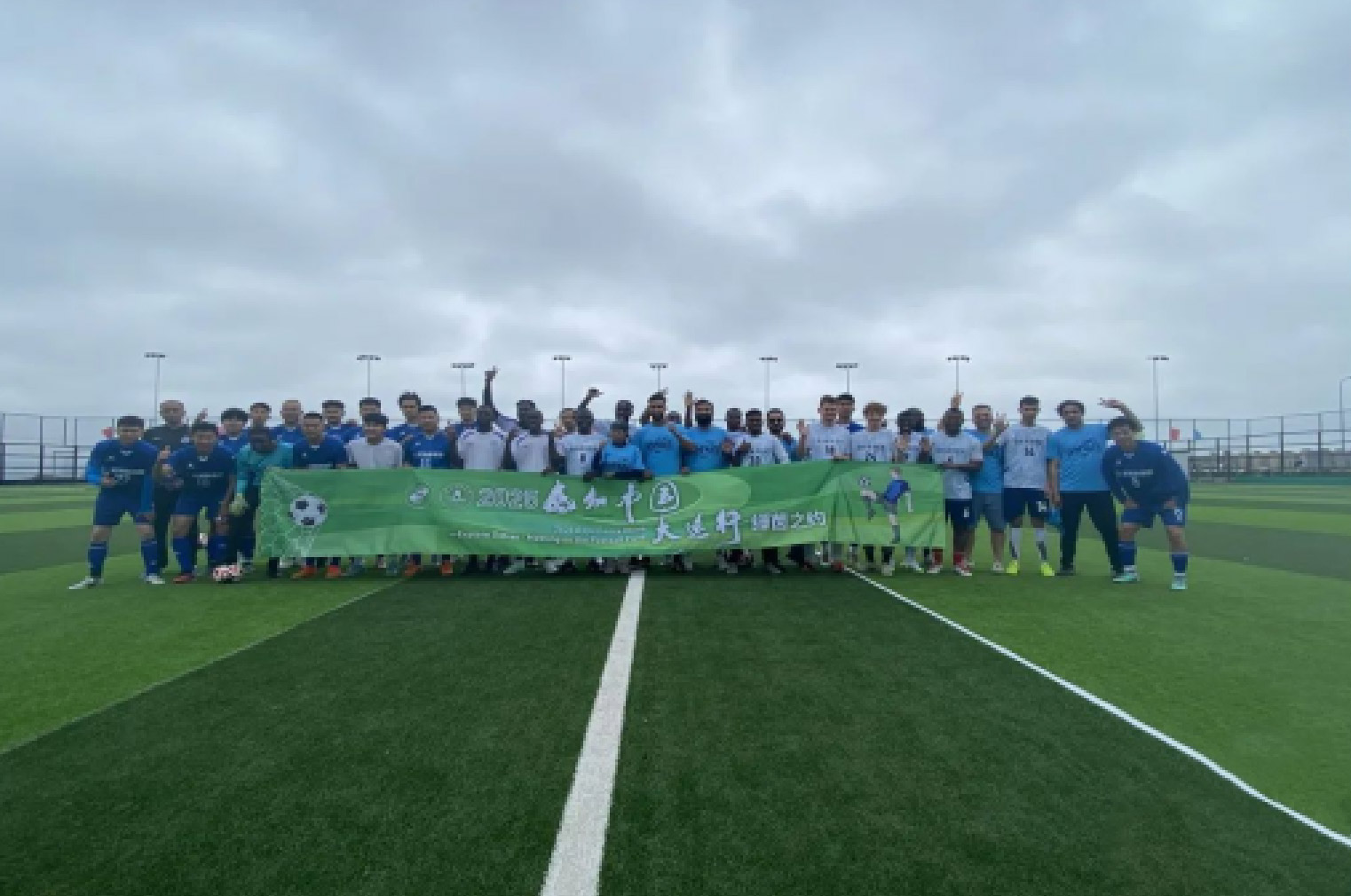 賽場上,雙方隊員你來我往。賽后,雙方互相致意,有留學生表示,這場比賽輸贏并不重要,重要的是用足球建立了超越語言的友誼。