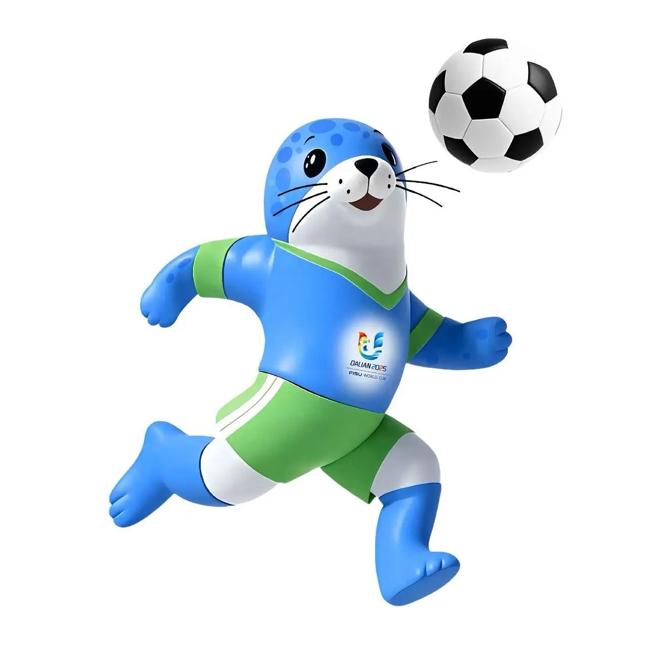 吉祥物的亮相將現(xiàn)場氣氛推向高潮。以斑海豹為原型設計的吉祥物“連寶·斑海豹”,標志性的圓弧頭型與斑點紋路極具辨識度,黑曜石般明亮的雙眼靈動傳神,與大學生足球運動員在賽場上的頑強毅力、拼搏激情交相輝映,淋漓盡致地展現(xiàn)出當代大學生的青春活力與進取精神。