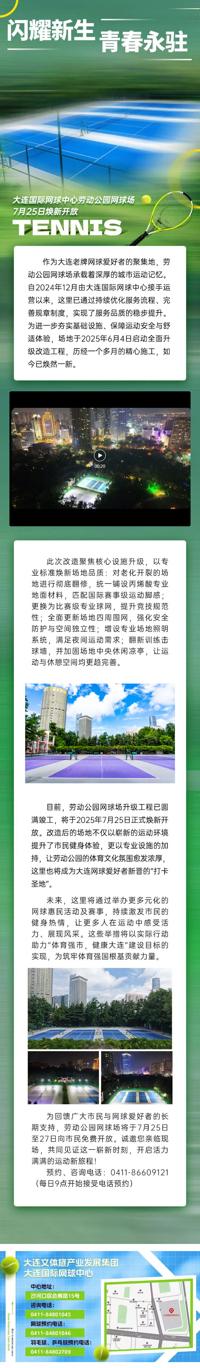 閃耀新生,青春永駐——大連國(guó)際網(wǎng)球中心勞動(dòng)公園網(wǎng)球場(chǎng)7月25日煥新開(kāi)放