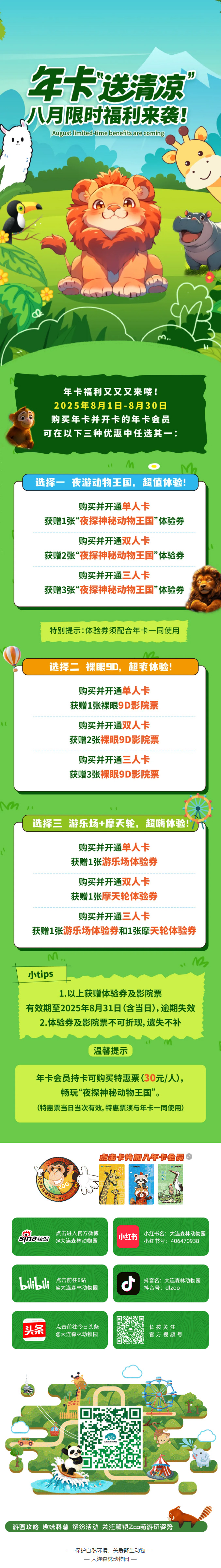 動(dòng)物園年卡“送清涼”,八月限時(shí)福利來(lái)襲!